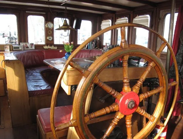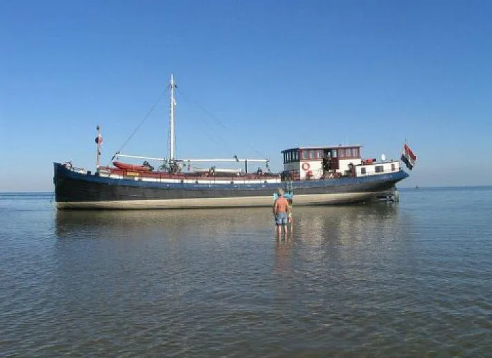 Het schip heeft een sterke zeeg met geveegde kont en dit geeft aan het schip het stoere zeewaardige en robuuste uiterlijk.