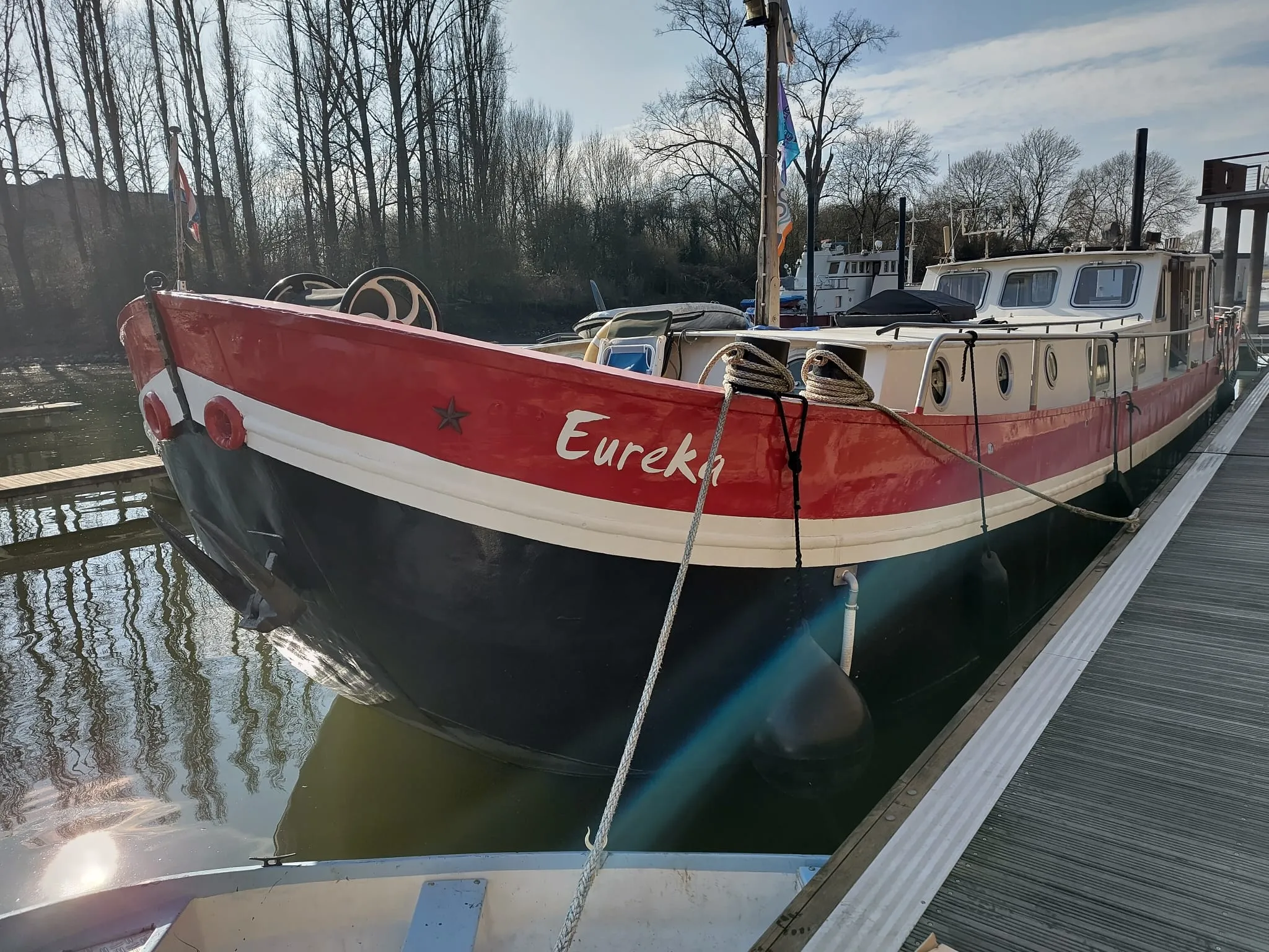 De Eureka is gebouwd midden in deze periode, in 1908 door de Gebroeders Prins in Waddinxveen en hete toen Disponibel. De naam betekent ‘Beschikbaar’ wat iets zegt over de bestemming van het schip: beschikbaar voor vrachtvervoer. Dat de Eureka gebouwd is als zeilschip is nog steeds zichtbaar aan het verlaagde berghout ter plaatse van de zwaarden en de resten van puttingijzers op het boeisel die de aansluiting vormen voor het staand wand.