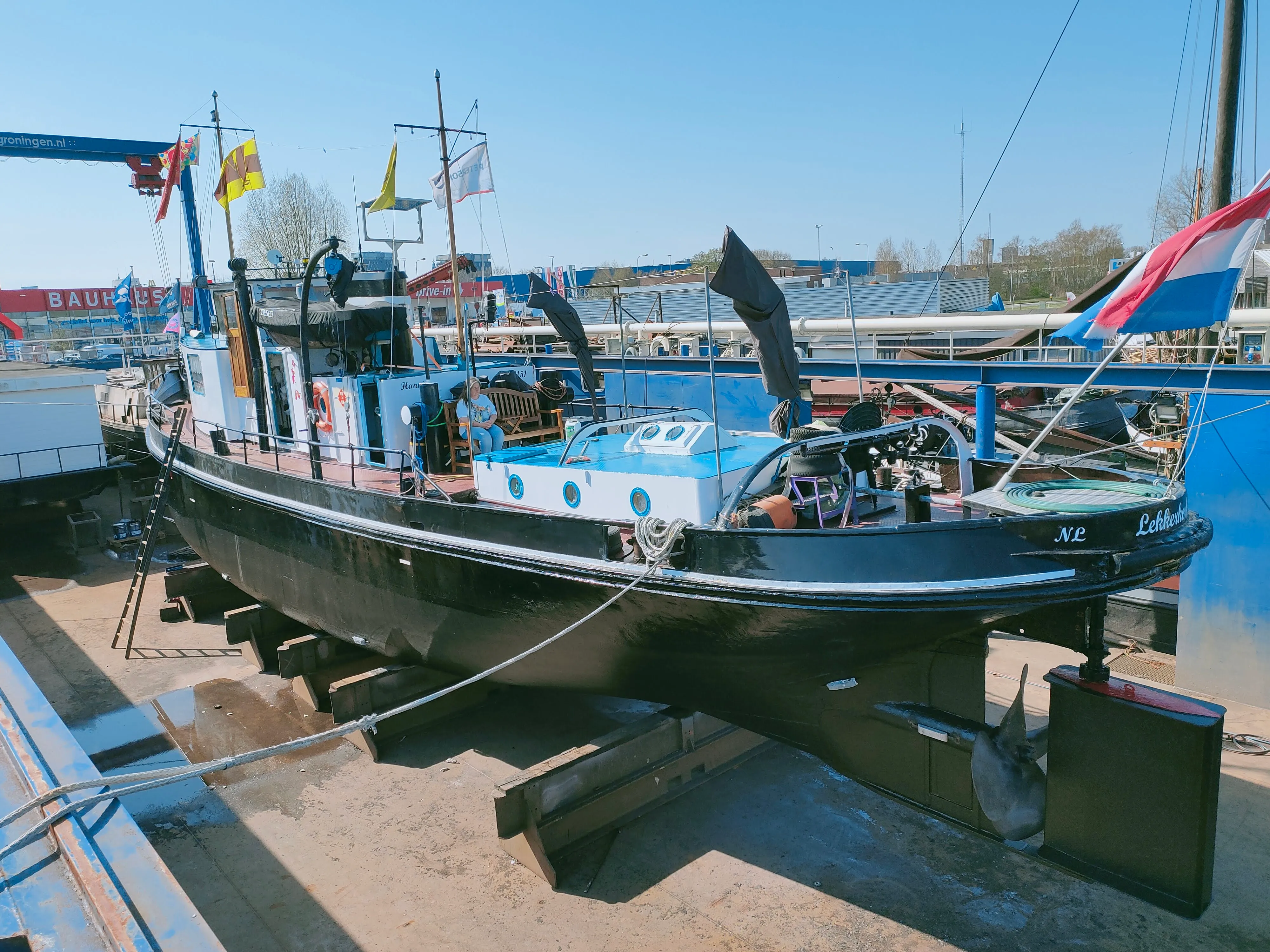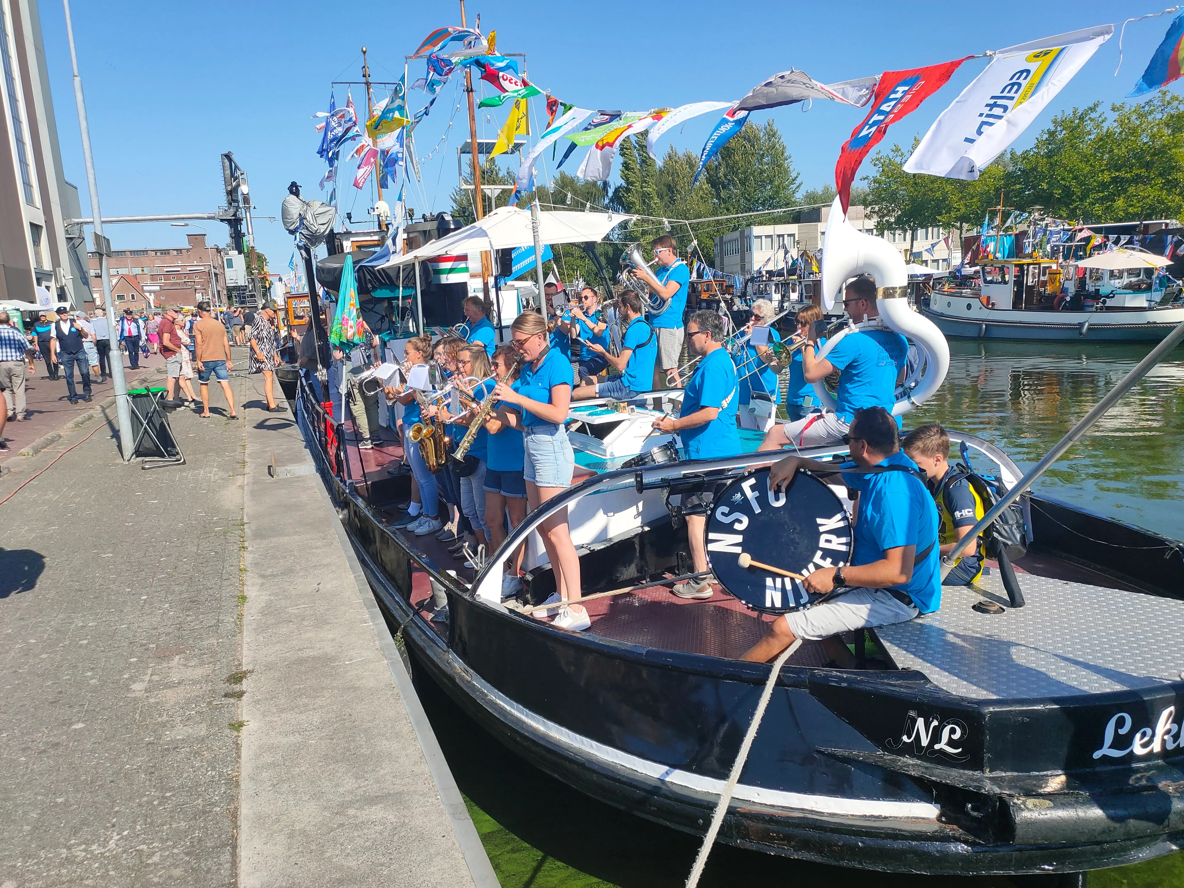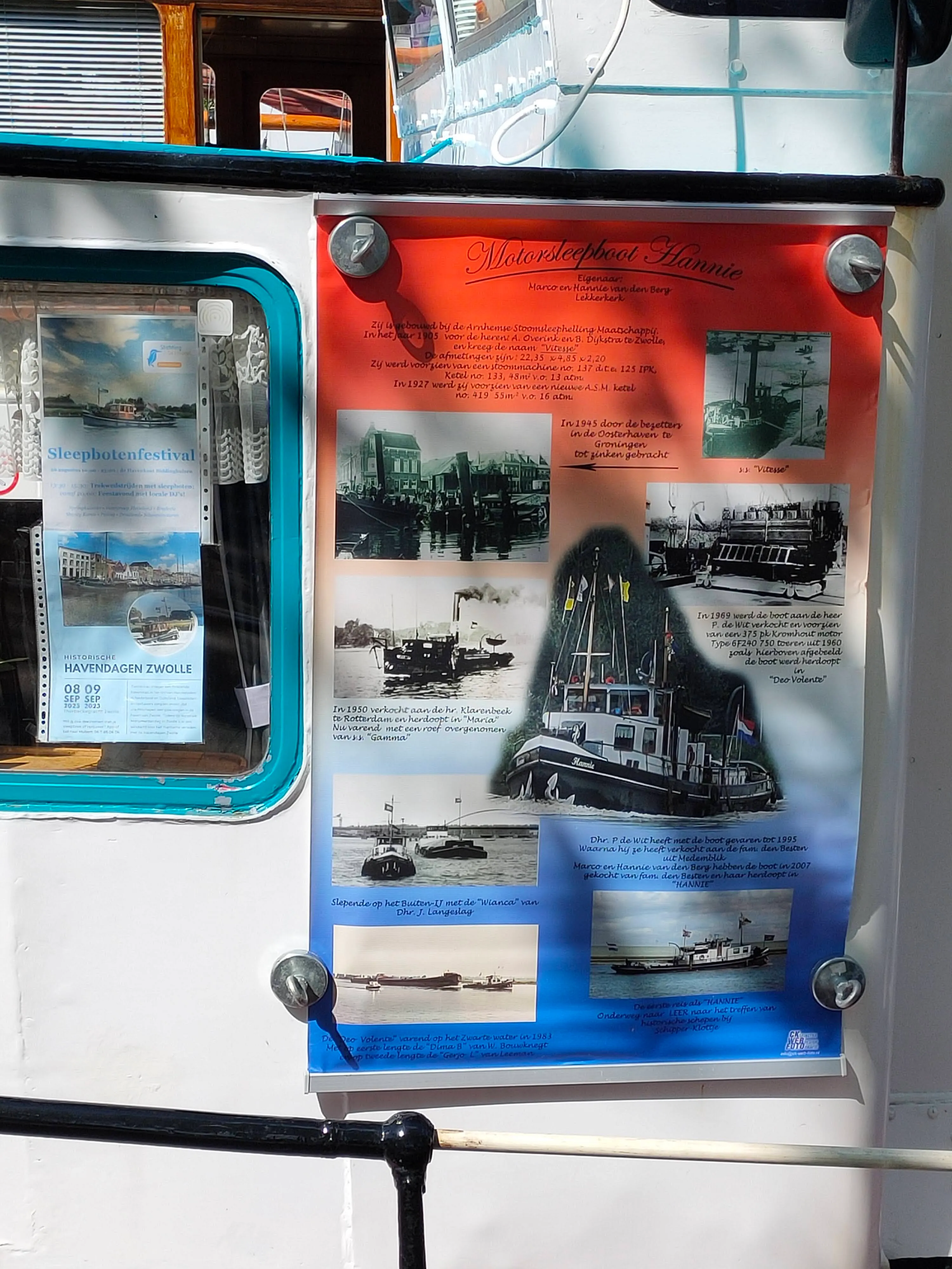 Dit schip beschikt over een spandoek waarmee het “verhaal van het schip” in de haven kan worden gepresenteerd.