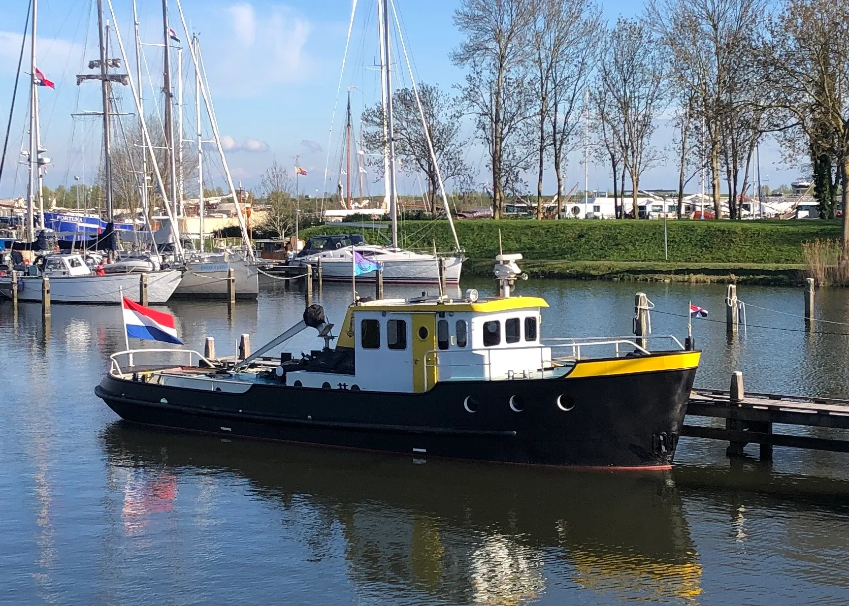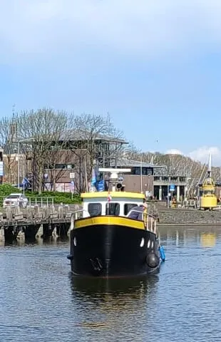 Dit schip beschikt over een spandoek waarmee het “verhaal van het schip” in de haven kan worden gepresenteerd.